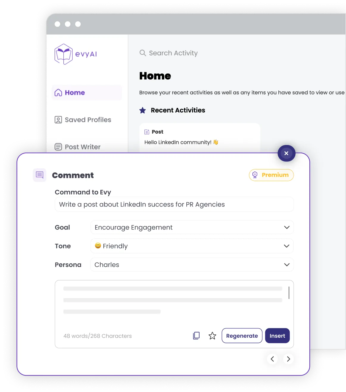 The evyAI web app, chrome extension, and website are in no way authorized by, endorsed by, or affiliated with LinkedIn™ or its subsidiaries. All references to LinkedIn™ and other trademarked properties are used in accordance with the Fair Use Doctrine and are not meant to imply that this app is a LinkedIn™ product for advertising or other commercial purposes.